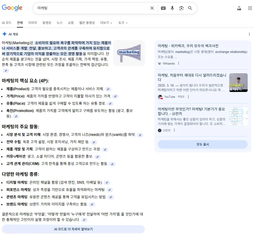 기존 검색 환경에서는 검색 결과 페이지에서 몇 위에 노출되는지가 중요했다면, AI 검색 환경에서는 AI가 어떤 콘텐츠를 참고해 답변을 만들고 어떤 출처를 인용하는지가 핵심이 되는 거죠.
