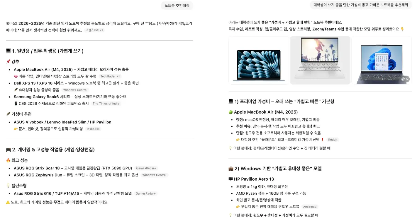 AI는 단어 간의 관계를 분석합니다. 예를 들어 우리 브랜드의 핵심 상품이 ‘노트북’이라면요. 핵심 상품이 노리고 싶은 키워드와 반복적으로 묶여 있어야 합니다. 단순히 ‘노트북’이라고 언급할 게 아니라 ‘가성비 좋은 노트북’으로 언급한다면 사용자가 ‘가성비 좋은 노트북’을 찾을 때 검색될 가능성이 높아집니다.