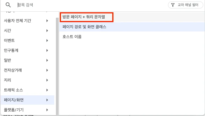 "페이지 경로 및 쿼리 문자열" (Page path and query string) 선택