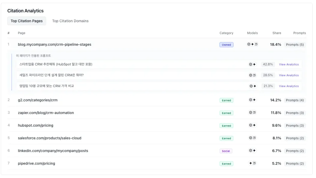 예를 들어 ChatGPT에서 “최신 B2B CRM 추천”을 검색하면 AI가 바로 비교표와 추천 내용을 보여주므로 사용자는 웹사이트를 클릭하지 않습니다. 따라서 클릭 수만으로 성과를 판단하면 중요한 신호를 놓치게 됩니다.