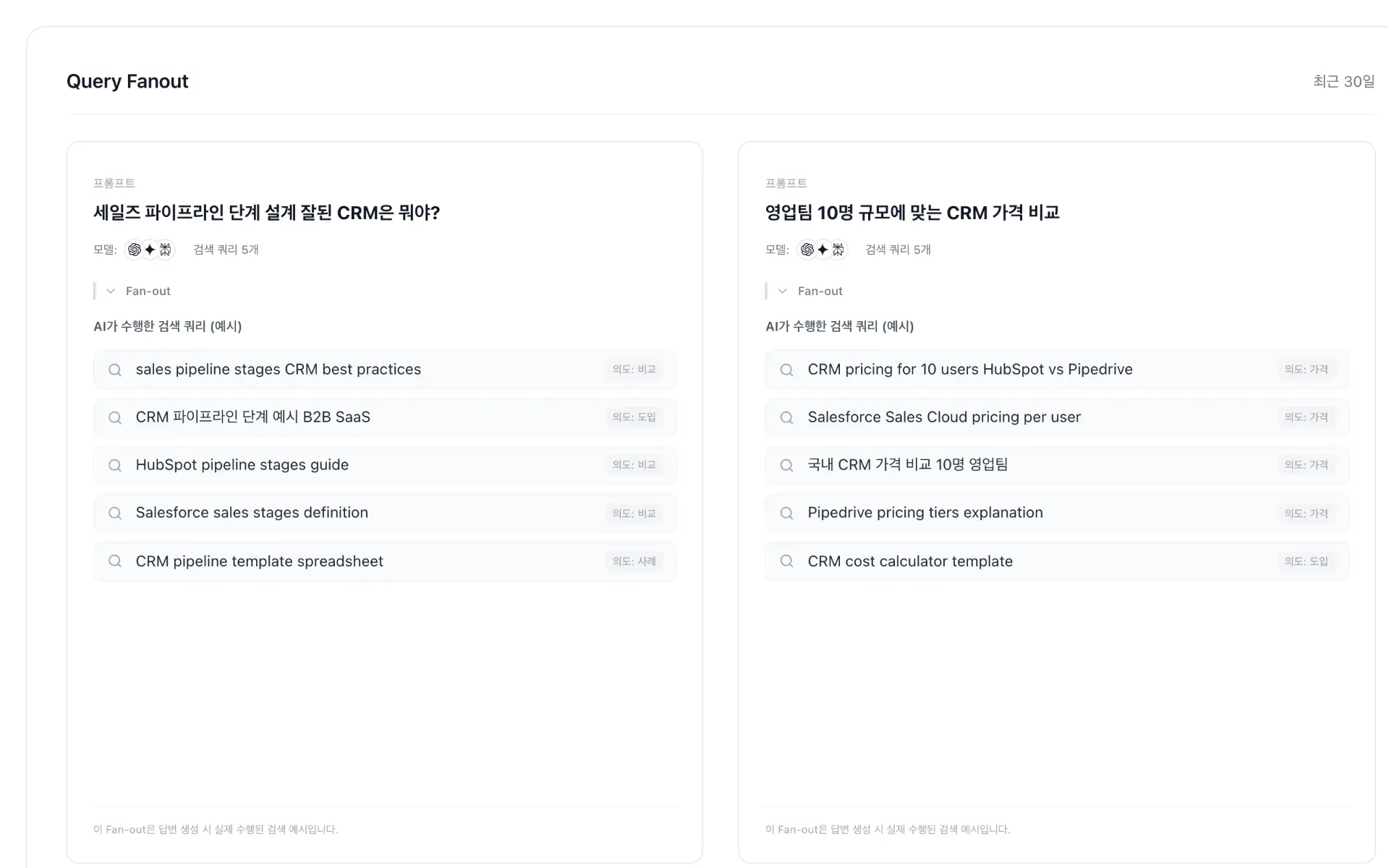 심지어 노출, 인용, 유입이 서로 다른 원인에 의해 동시에 작동하기 때문에 개별 지표만으로는 GEO의 문제 지점을 정확히 파악하기 어렵습니다. 따라서 GEO에서는 AI 검색에서의 노출량부터 인용 구조, 실제 유입까지 하나의 흐름으로 연결해 분석할 수 있는 체계가 필요한데요.