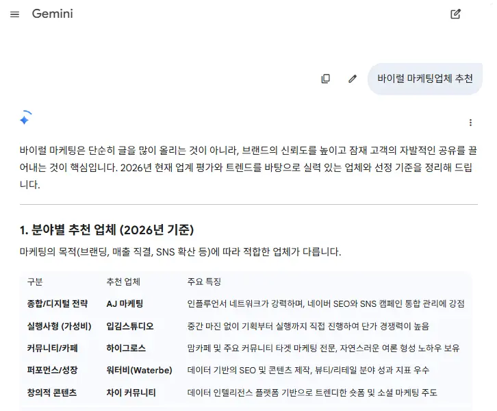 구글을 예로 들면 Gemini 역시 구글 검색 시스템을 기반으로 작동하지만, 기존의 구글 검색 시스템을 그대로 따르는 것은 아닙니다. 이는 같은 키워드를 구글과 Gemini에서 각각 입력했을 때 노출되는 결과와 답변 방식이 서로 다르다는 점만으로도 알 수 있습니다. 이러한 차이 때문에 GEO는 기존 SEO와는 다른 전략으로 접근해야 합니다.