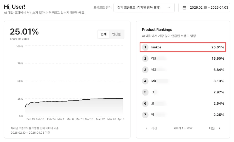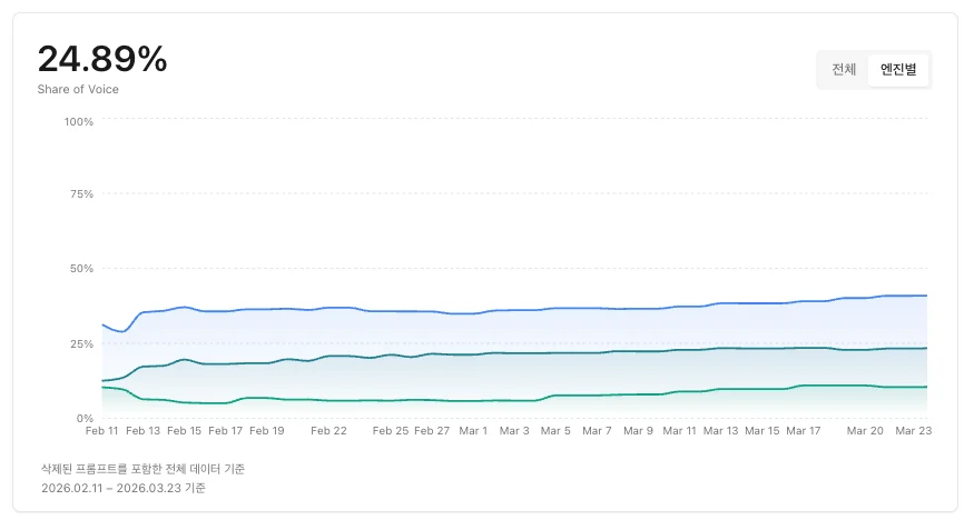 AI 검색에서 가장 중요한 건 경쟁사 대비 어디에 있느냐입니다.