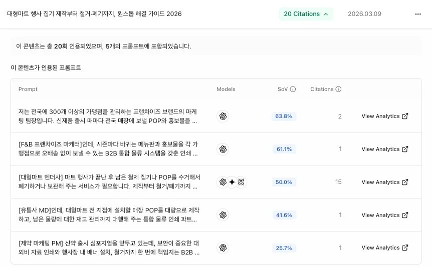 - AI 인용 3,981개 사이트 중 실질 1위, 경쟁사 대비 인용 3.6배