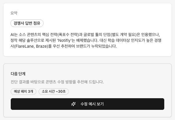 노티플라이(Notifly) 성공사례에서는 단지 AI 유입을 확인하는 것에서 끝나지 않고 AI 답변의 구성 요소로서 인용되는 구조로 콘텐츠를 바꾼 것이 결정적이었습니다.