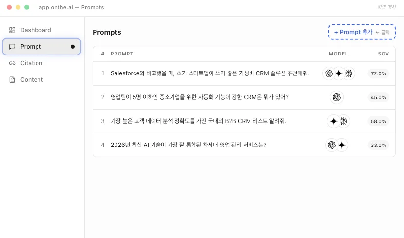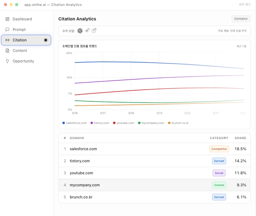 데이터 분석: Prompt, Citation, SoV 데이터를 실시간 수집